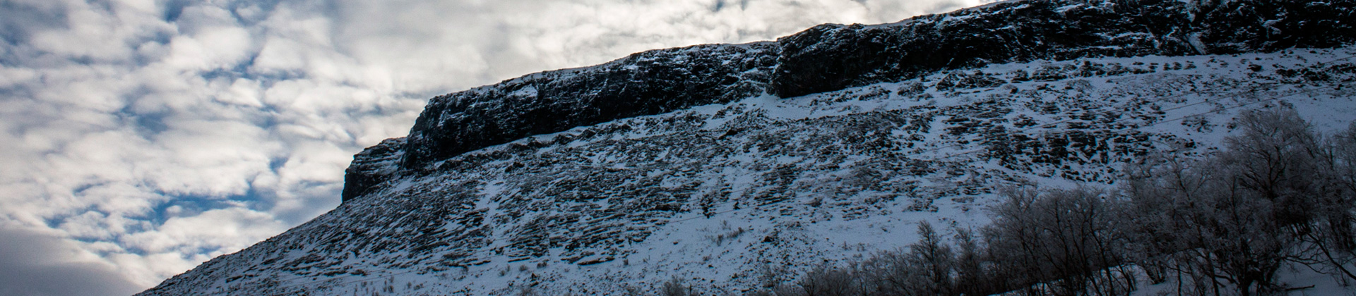 Nous découvrons donc une route bordée de montagnes, plus ou moins hautes (toutes font environ 1000 mètres d’altitude), et nous en découvrons encore et encore au fur et à mesure que nous avançons, à chaque sortie de virage. Chacun ayant leur forme propre, tantôt cerclée d’une roche noire presque volcanique, parfois très à-pic, ou plus ronde, ressemblant au tunturi finlandais.
