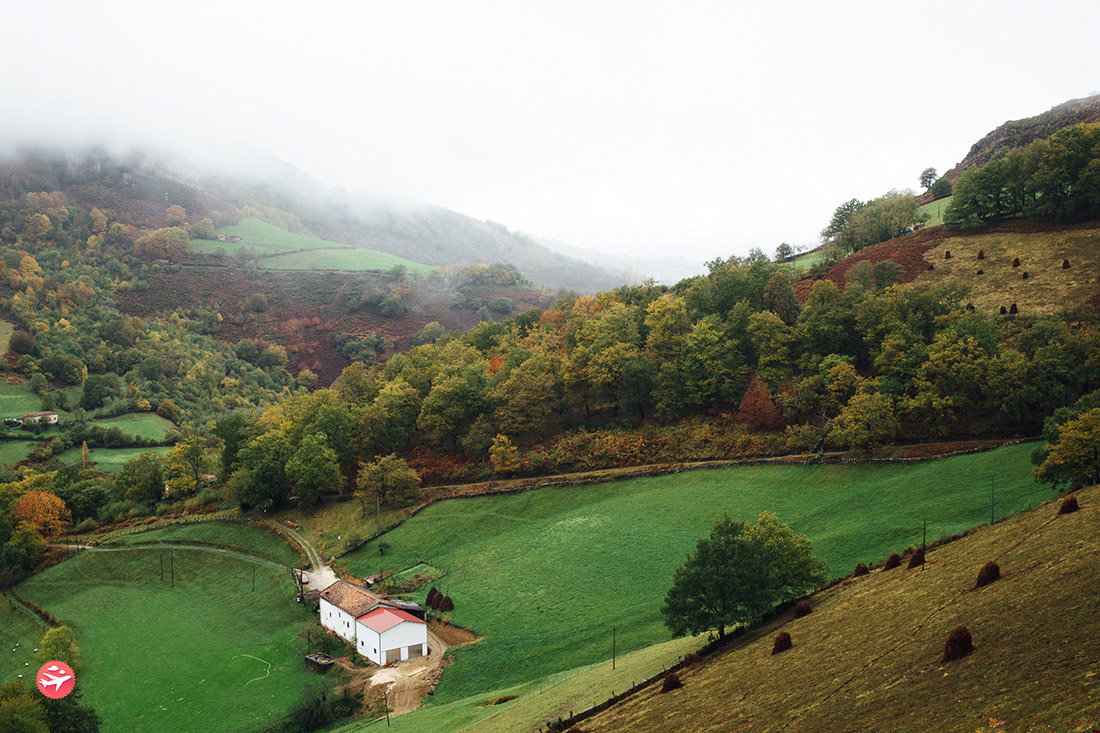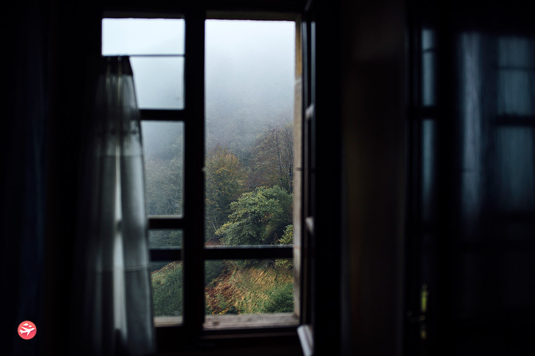 Au réveil, en ouvrant les fenêtres de cette vieille Baserri, les ombres qui nous enveloppaient la veille au soir étaient remplacées par un brouillard dense qui glissait doucement depuis les montagnes alentour frôlant de son ventre, les terres encore tièdes de la vallée. L’atmosphère était au silence. Un silence des dieux, uniquement perturbé par le lointain bruissement d’un ruisseau. Passer cette nuit dans une vieille baserri (ferme), n’était pas sans faire remonter les souvenirs de la nuit dans l’antique maison de Donna Rita à Rio de Onor, dans le fin fond du Portugal nord.