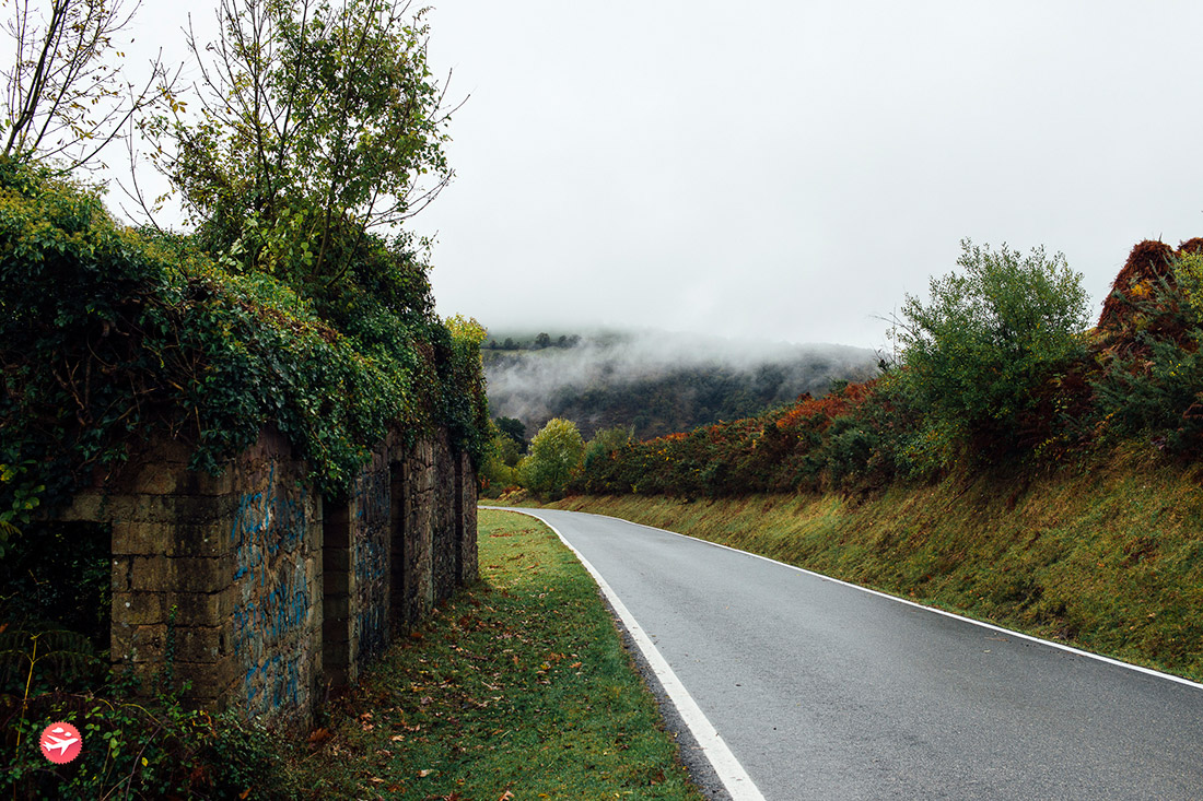 A l’horizon, quand le brouillard nous en laissait le loisir, la vue se jouait de nous, nous dévoilant ses charmes avec la timidité d’une ingénue. De temps à autre les contreforts du Parc de Bertiz se dessinaient sous nos yeux pour rapidement disparaître sous des volutes transparentes. Comme un symbole du temps qui passe pour ne plus jamais revenir en arrière, dépecé et jeté aux abords de la route, une ancienne bergerie gisait abandonnée aux quatre vents.