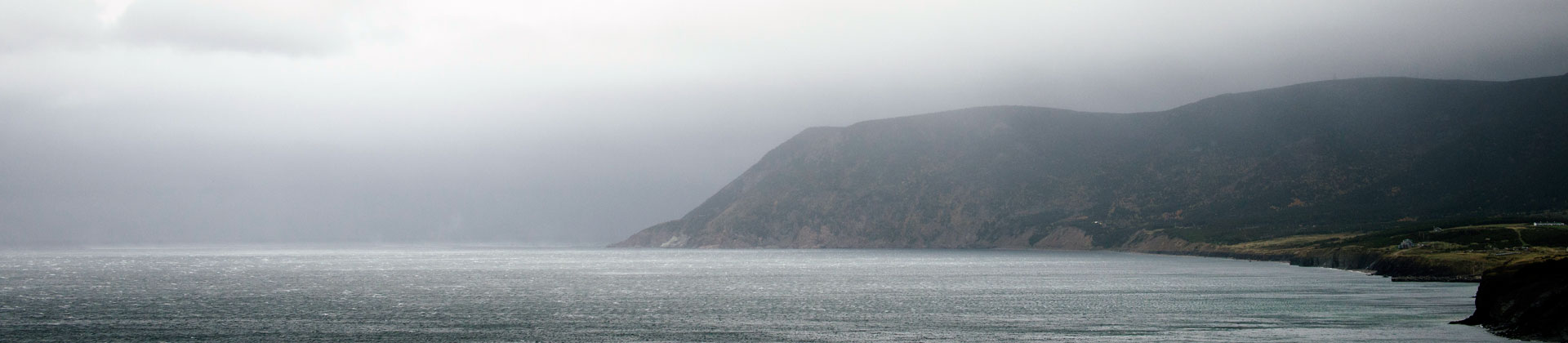 Nous voilà de nouveau sur le bitume de la Cabot Trail, un petit arrêt en haut d’un point de vue nous permet en plus d’apprécier la vue sur les South Mountains, de voir que le vent a considérablement forci et que les nuages encerclent les sommets.