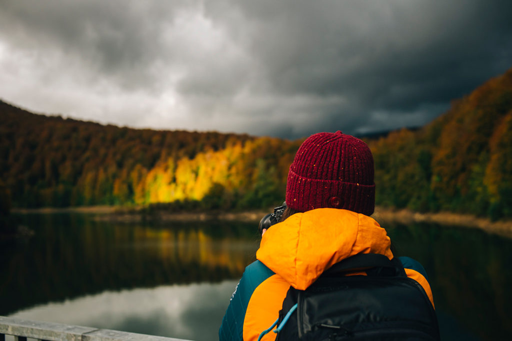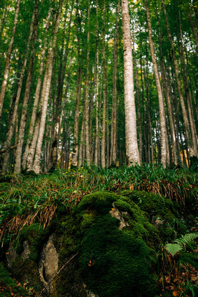 La plus grande hêtraie d’Europe se pare alors en cette saison d’automne de son manteau canadien. Une carte postale à elle seule qui s’allume et rayonne lorsqu’un trait de soleil perce les nuages lourdement chargés restés coincés au cul des montagnes.