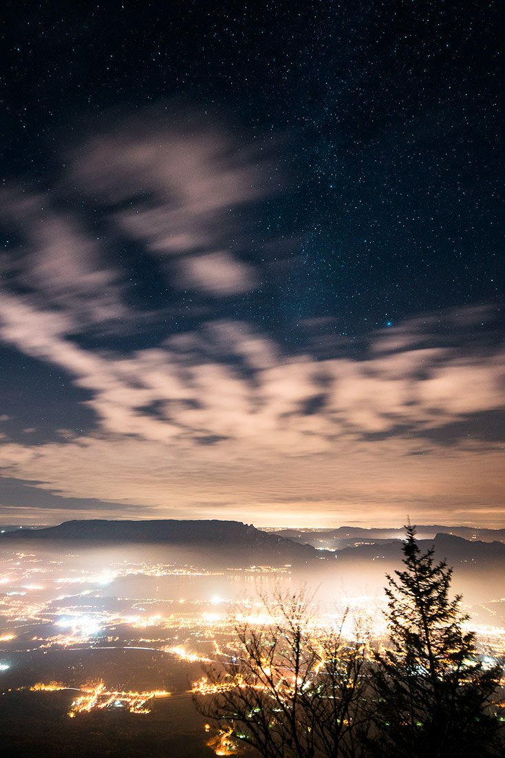 Nous passons plus d’une heure à faire quelques photos. Il est assez tôt, aux alentours de 21h et nous sommes vendredi soir, près d’une grande ville. Nous en profitons également pour découvrir la webcam a 360° du Mont Revard. Ceux qui nous suivent depuis longtemps savent à quel point nous essayons toujours de trouver une webcam sur notre passage, histoire de faire coucou à nos parents.