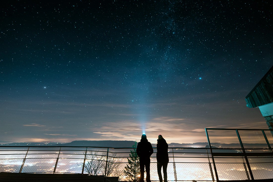 Alors certes nous sommes sur un parking, en cul-de-sac, sous les lampadaires mais, car il y a toujours un mais, les étoiles sont de sortie et la vue depuis le promontoire est juste à couper le souffle.