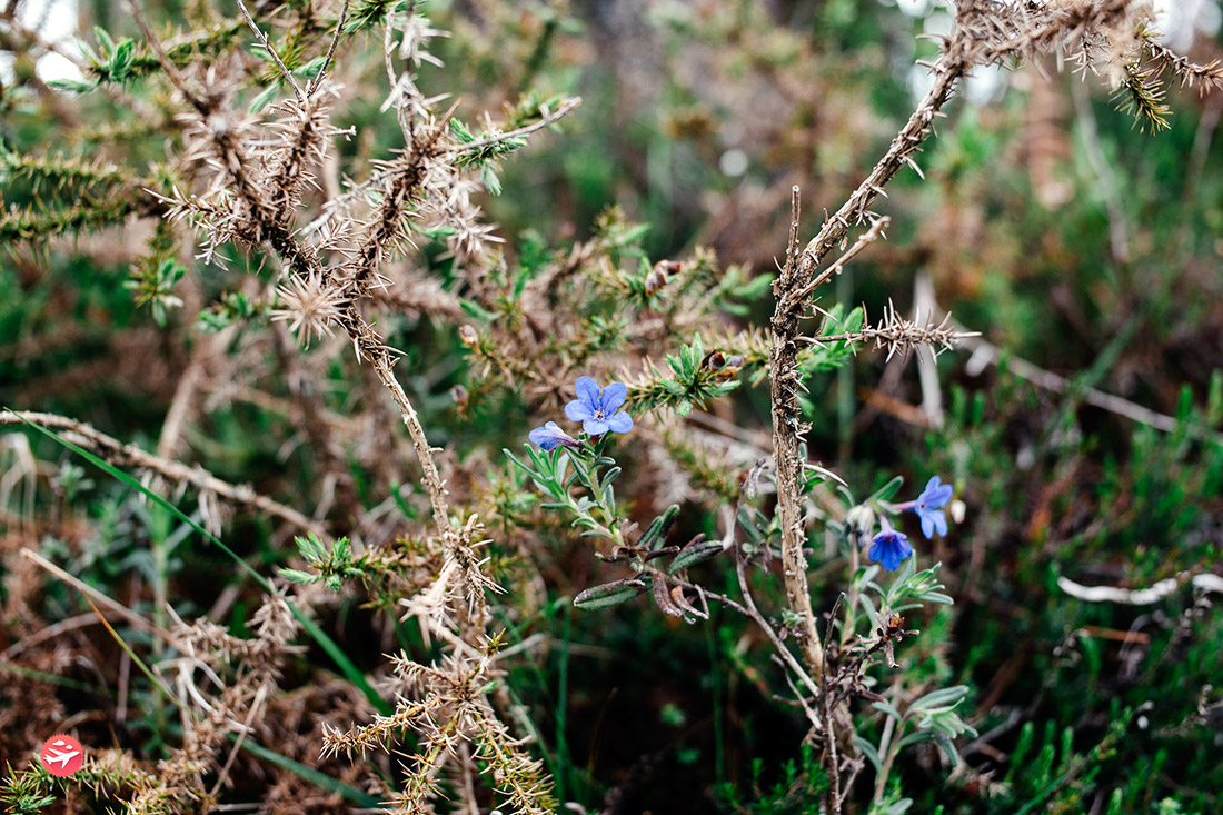 La lumière était mystique, les monts aux rochers de granit déchiquetés se découpaient dans une brume hypnotique. La vue était magique, ponctuée d’arbres rachitiques émoussés par des rafales de vent. Il était là, l’autre Portugal que nous étions venus chercher. A nos pieds, avec cette ambivalence, cette contradiction entre la dureté de ces roches et la nature printanière faite de fleurs jaune et violet semblant dire « Merde » à ce temps tout droit sorti de l’automne. Nous avons terminé cette journée dans ce qui reste le pire hébergement de notre séjour, frigorifiés mais le cœur chaud de ce que nous avions vu.