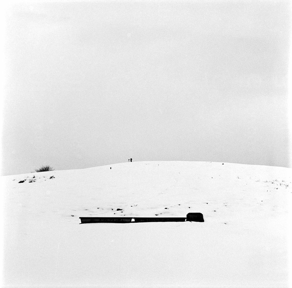 Un cordon de bitume s’élevait sec pour nous faire déboucher au milieu des prairies dorées barbouillées de traits d’une neige blanche et humide. On aurait dit les plaines du Montana en plein hiver où l’on aurait remplacé les Mustangs et les American Paints par des Pottoks aux poils d’hiver venus brouter sous un ciel presque bleu.