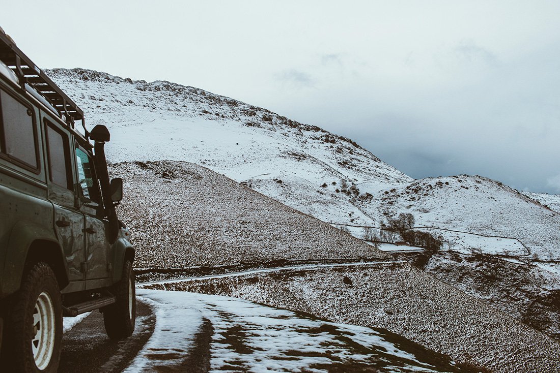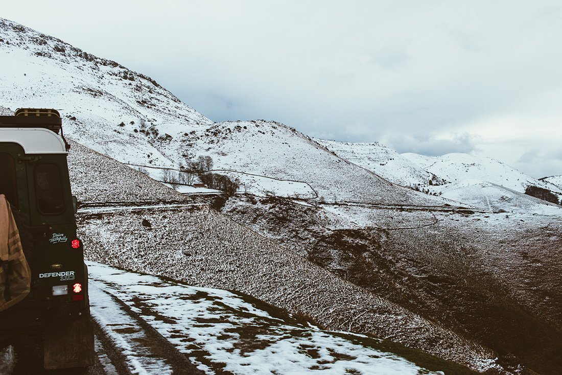 La route s’élevait, restait roulable et praticable et soudain arrivés sur un col, elle ne l’était plus. Et nous, nous n’étions plus seuls. Un 4×4 blanc et sur la crête au loin, une silhouette noire. A cet instant je perds tous mes adjectifs, j’ai l’impression de tous les avoir égrainés et de manquer de talent pour en inventer d’autres.